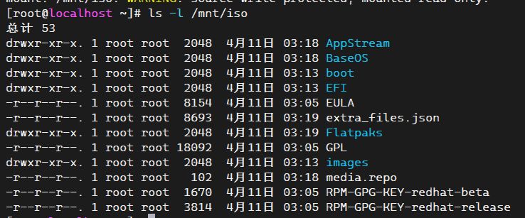 这里会提示:mount: /mnt/iso: WARNING: source write-protected, mounted read-only. 这个意思是挂载的文件为只可读文件,只是一个提示,不需要管 [[8b89c33168c624c138272149c41d420d_MD5.jpeg|Open: Pasted image 20250916200625.png]] 如上图可以查看到挂载到/media中的文件