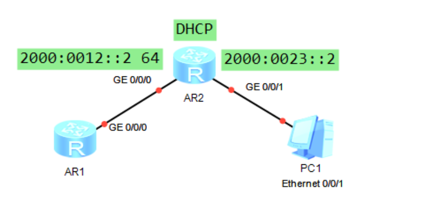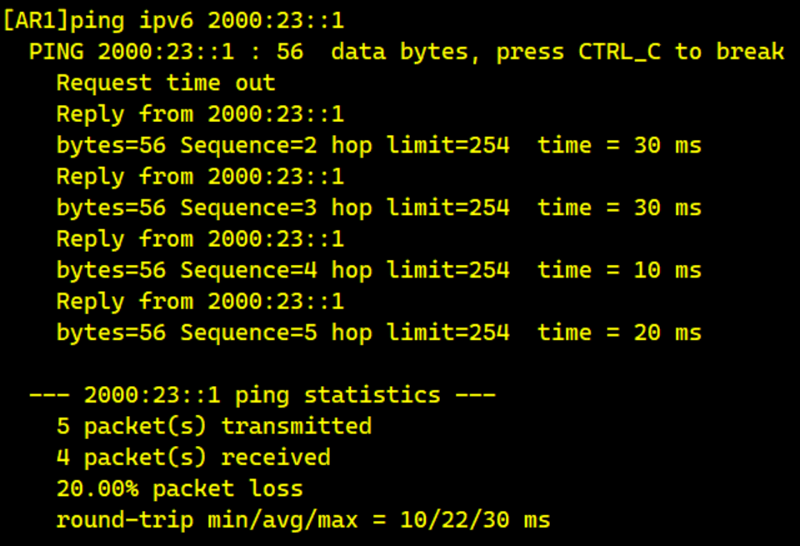 ipv6 route-static 2000:23:: 64 2000:12::2访问PC1
