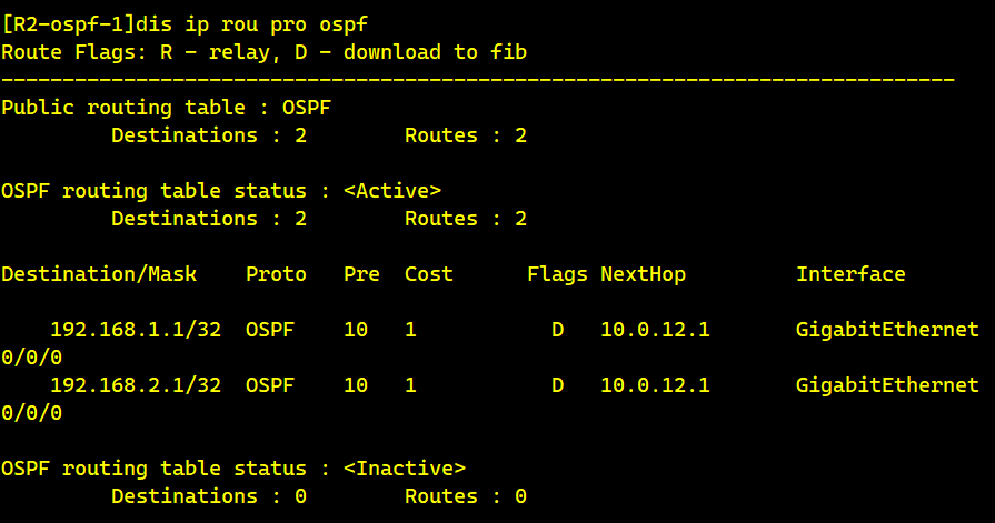 quit在R2上查看OSPF路由