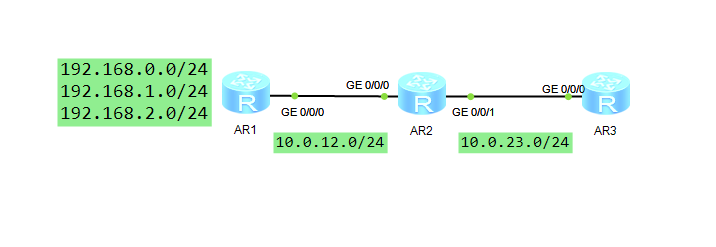 三个路由器运行OSPF协议,使用路由策略工具Filter-Policy在R2上过滤掉192.168.0.0的路由,使用策略路由工具Traffic-Policy在R2上过滤掉192.168.1.0的流量。