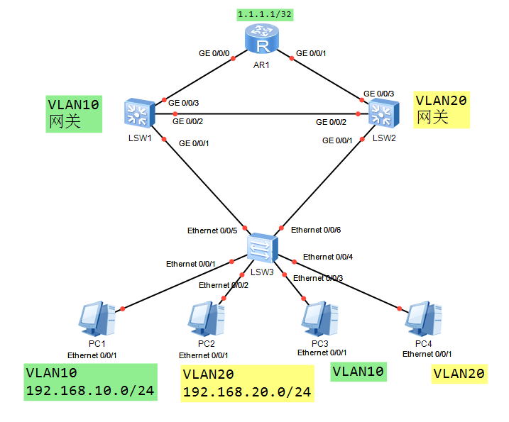 (1)SW3和SW2的链路在VLAN10中阻塞,VLAN20中转发 (2)SW3和SW1的链路在VLAN20中阻塞,VLAN10中转发